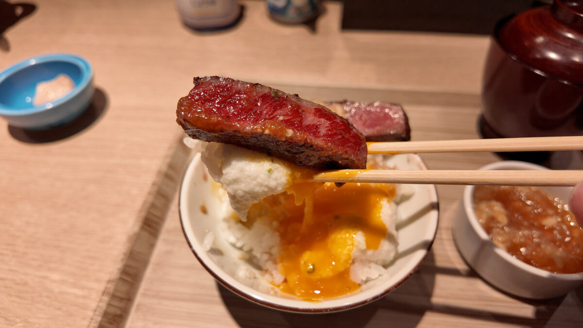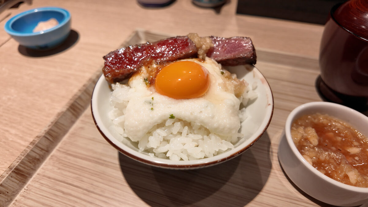 さらに、トッピングメニューの「とろろ」と「卵」を合わせることで、即席の“ステーキ丼”を作ることも可能。