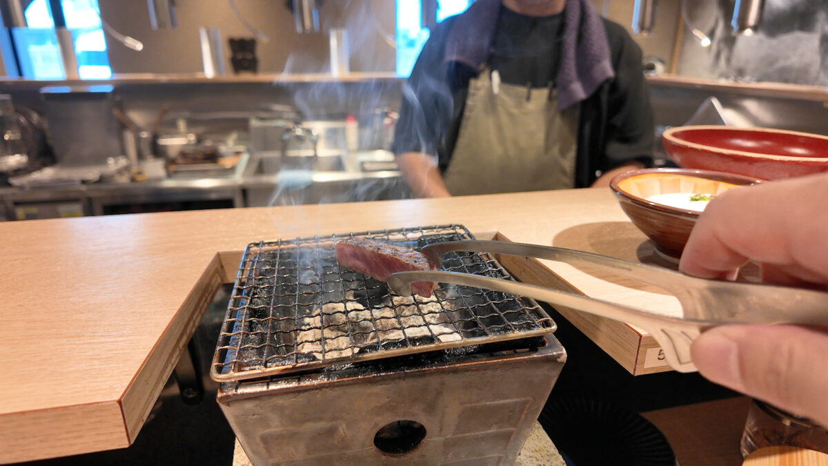 炭火の香ばしさと肉本来の旨味を自分のタイミングで引き出せる、まさにライブ感のある一皿です。