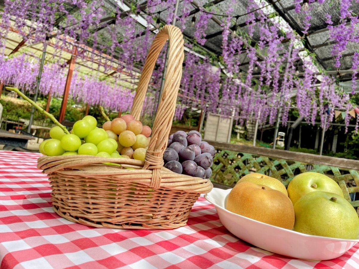 「福田フルーツパーク」では、季節ごとに様々な果物狩りが楽しめます。7月〜10月には梨とぶどう、12月〜6月はいちご、7月〜8月にはブルーベリーというラインナップ。梨とぶどうは特に人気だそうで、9月のこのシーズンが多くの来園者で賑わうそうです。
