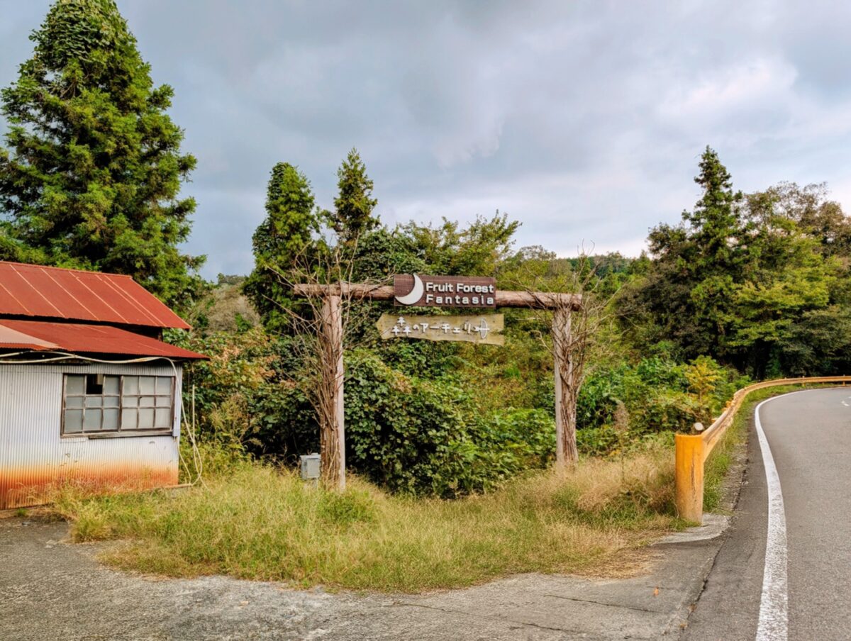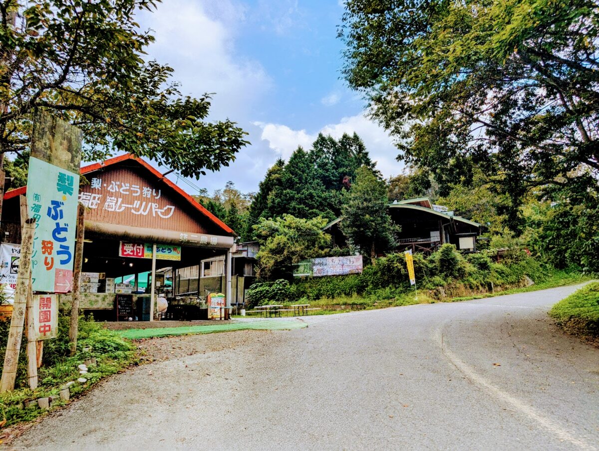 県道434号線から菅野湖沿いの山道を道なりに走り、徳山徳地線(9号線)を進むと、須金フルーツランドの大きな看板が見えてきます。