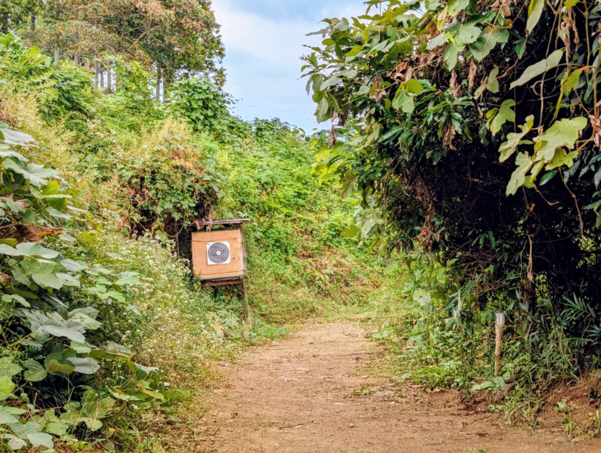 「福田フルーツパーク」の周辺には、暴風林を伐採した際に作られた道が山の中に1000メートルから1200m ほどあり、それをうまく活用できないかと考えられた社長の福田陽一さんが思いつかれたのが フィールドアーチェリーでした。