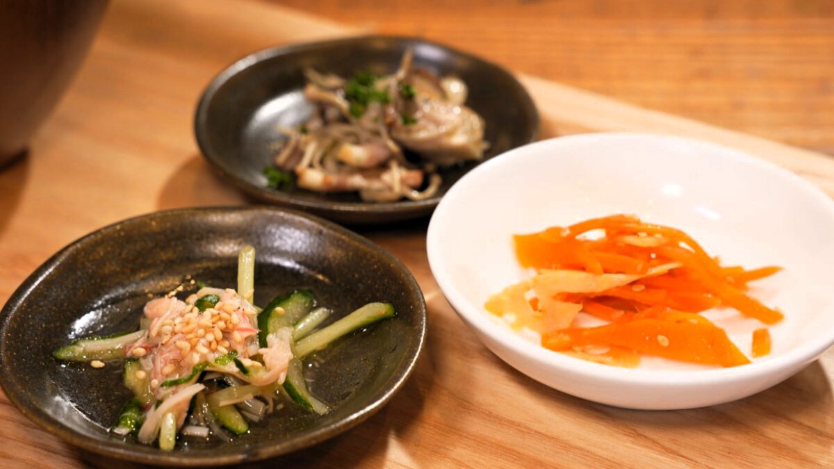 この日は、キュウリと蒸し鶏と梅のマリネや、自家製きんぴらの小鉢が並びました。