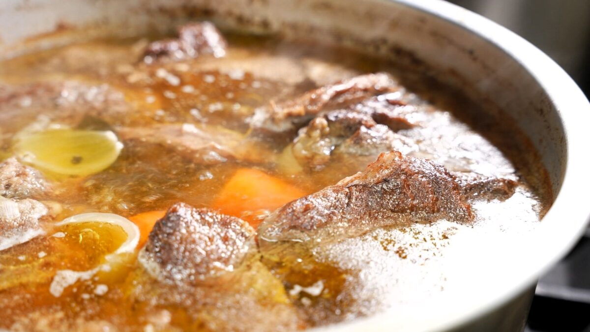 ポイントは、あまり沸騰させずにゆっくり火を通すこと。これで驚くほど柔らかく仕上がります。