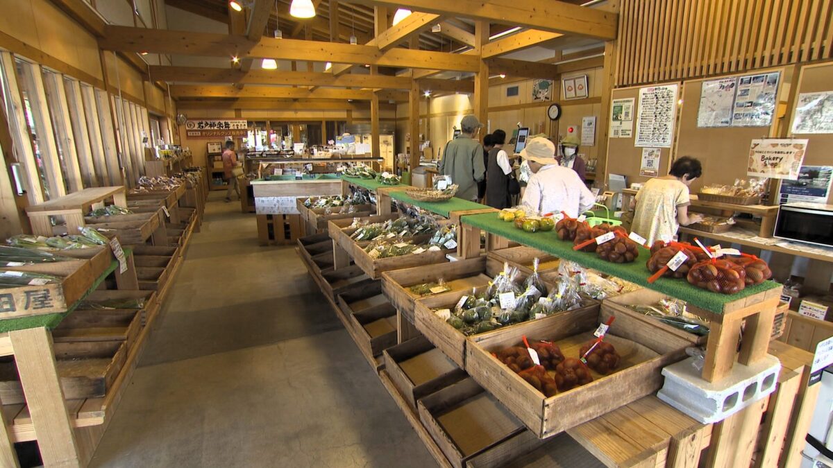 敷地内には直売所もあり、近くの農家が持ち寄った朝どれ野菜などが並んでおり、期待感が高まります。