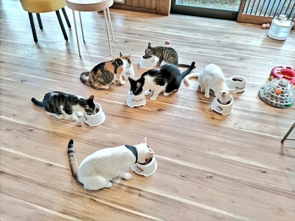 ちなみに夕方17時は猫たちのご飯タイムなので、その時間を狙うと普段は人見知りで隠れている猫も全員みることができるのでおすすめです。