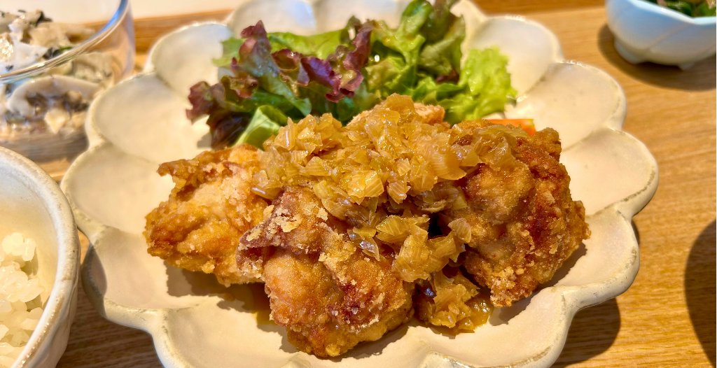 「HACO CAFE」の日替わりメニューは「野菜をたっぷり使って、身体に優しいご自愛ランチを楽しめる」というコンセプトで、毎週店舗公式Instagramで配信されています。店長さんによると、油淋鶏の他にも山口県のご当地メニュー「チキンチキンごぼう」やチキン南蛮が人気だとか。