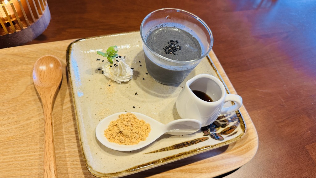 続いていただいたのは、オーナーこだわりの濃厚黒ごまプリン。