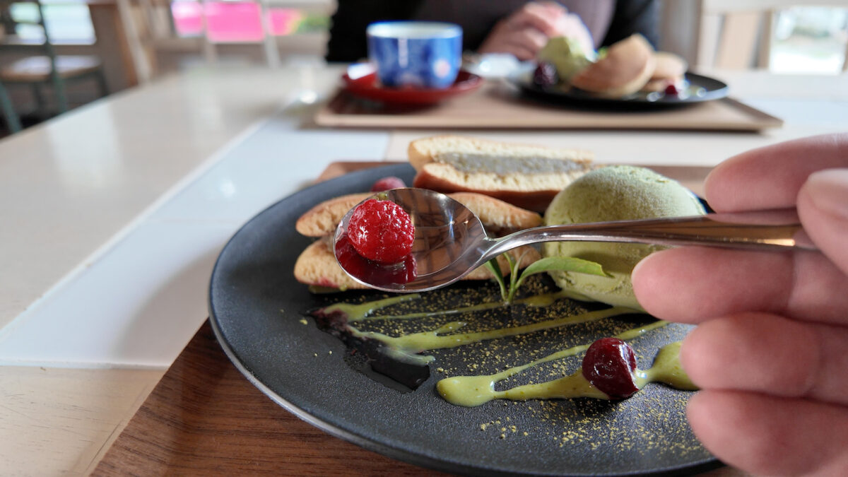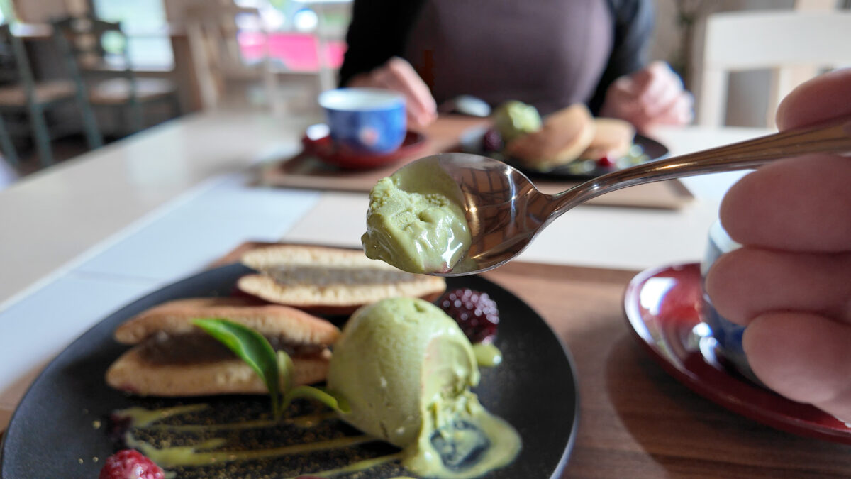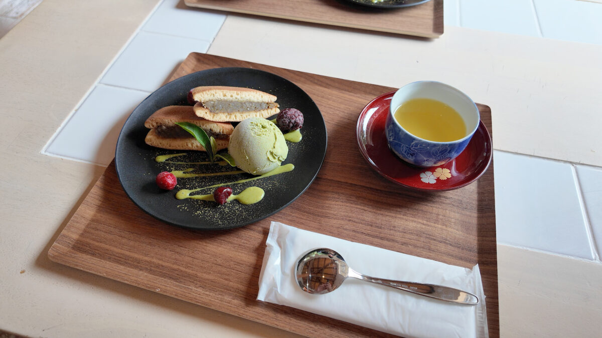 添えられた小野茶ソースは濃厚で、どら焼きにもアイスにも相性抜群。甘さと渋みが交互に押し寄せ、味の奥深さを感じさせてくれます。