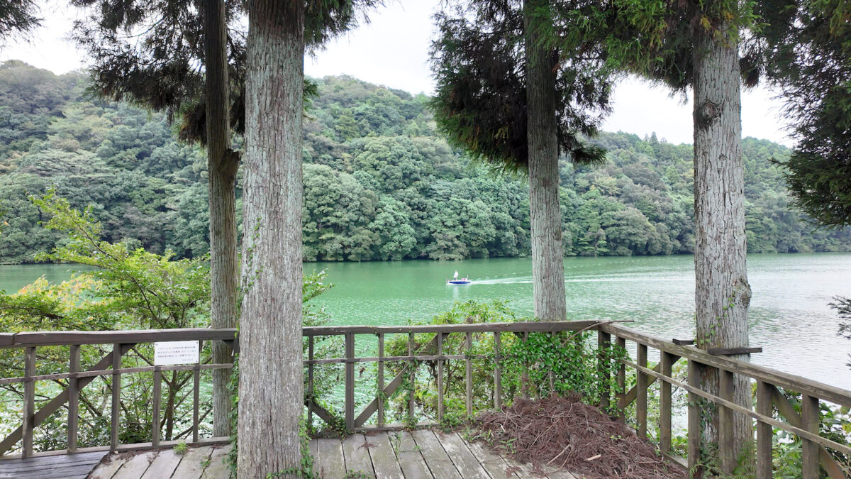 宇部市郊外、小野湖の静かな水面を望む場所に佇む「小野茶直売所」。