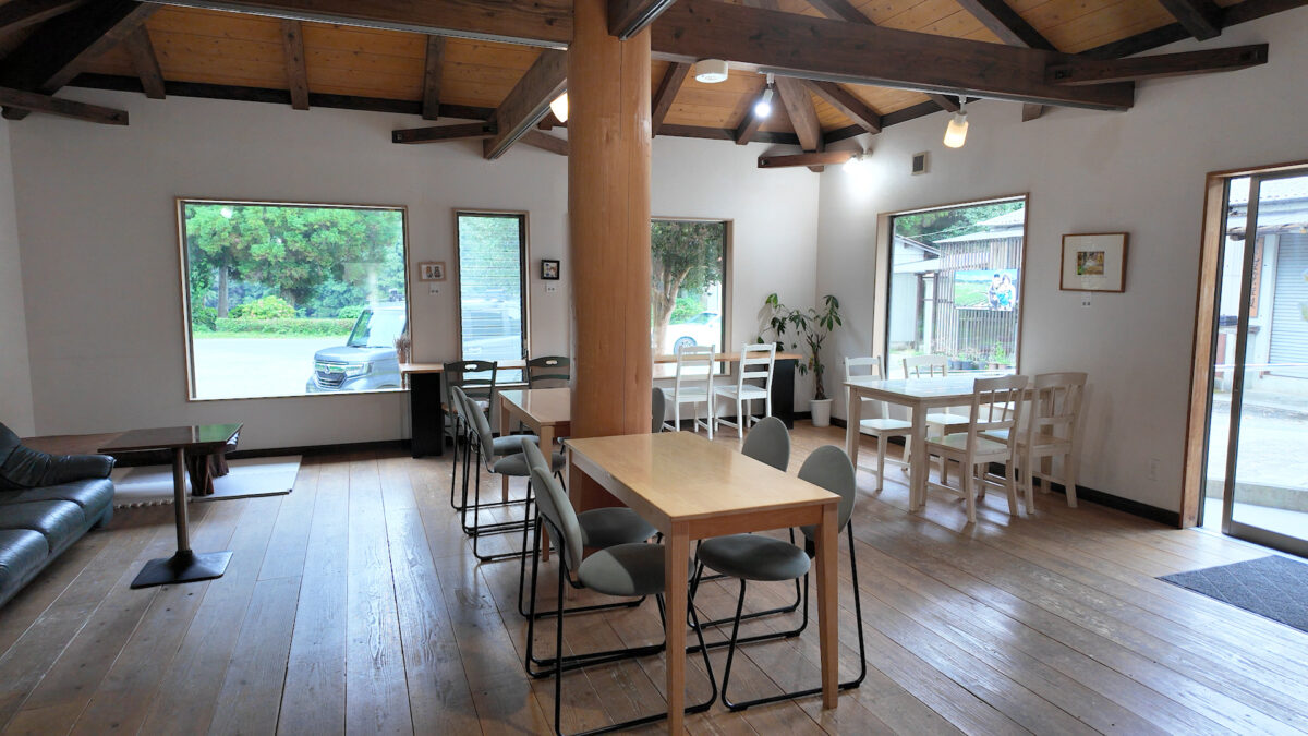 奥にはイートインスペースが設けられ、テーブル席やソファ席など、ゆったり過ごせる空間が広がっています。大きな窓から見える小野湖の景色は、何度訪れても気持ちを穏やかにしてくれますよ。