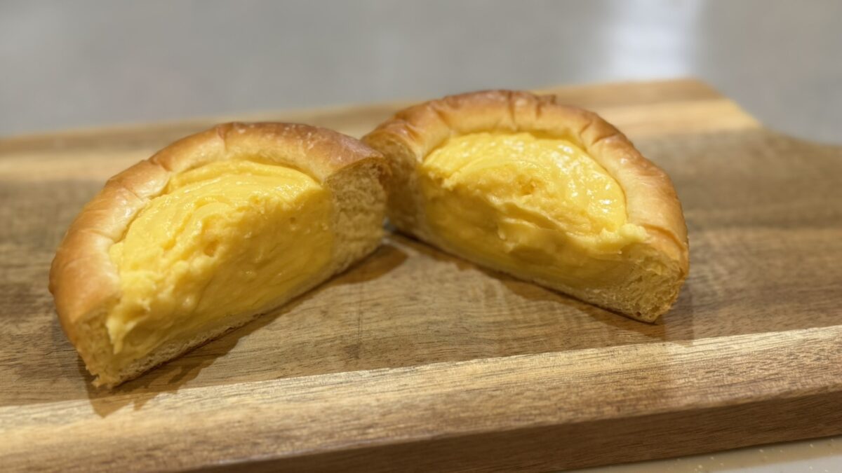 半分に割った瞬間、なめらかなクリームがとろり。濃厚なのに甘すぎず、パン生地の優しい香りと重なって、思わず笑顔になる味わいです。