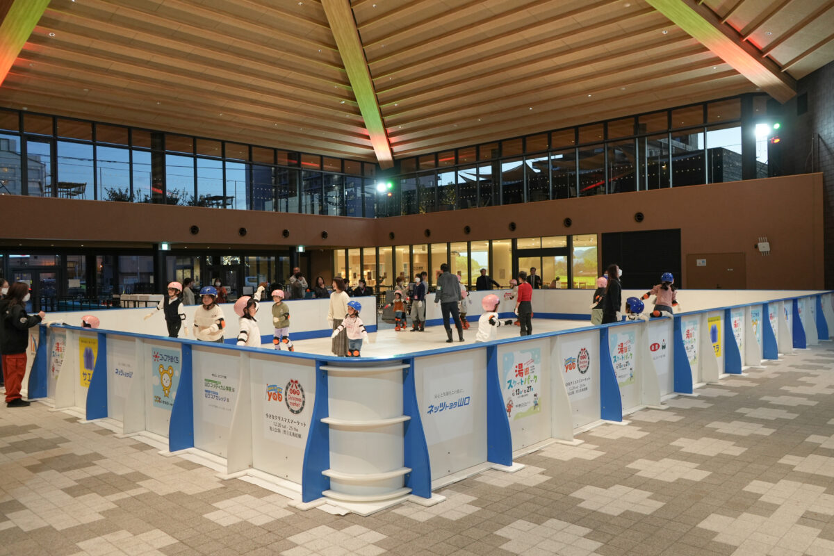 扉から入ると目の前に広がる大屋根広場に期間限定で10m×16mのスケートリンクが。