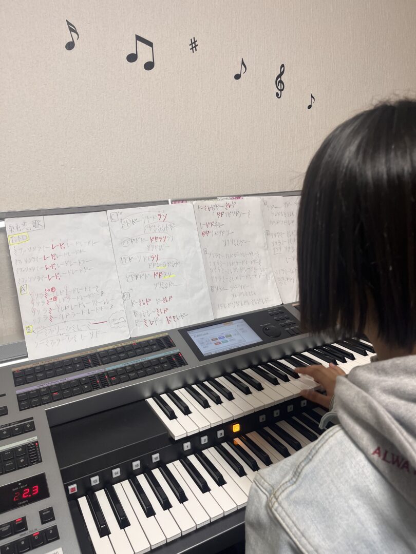 レッスンは一人ずつの個別指導が基本。ピアノ、エレクトーン、アコーディオン、そして歌など、幅広いコースが用意されています。生徒さんの層も幅広く、幼児から大人まで、これまでの最高齢はなんと86歳のピアノ生徒さんだったそう。