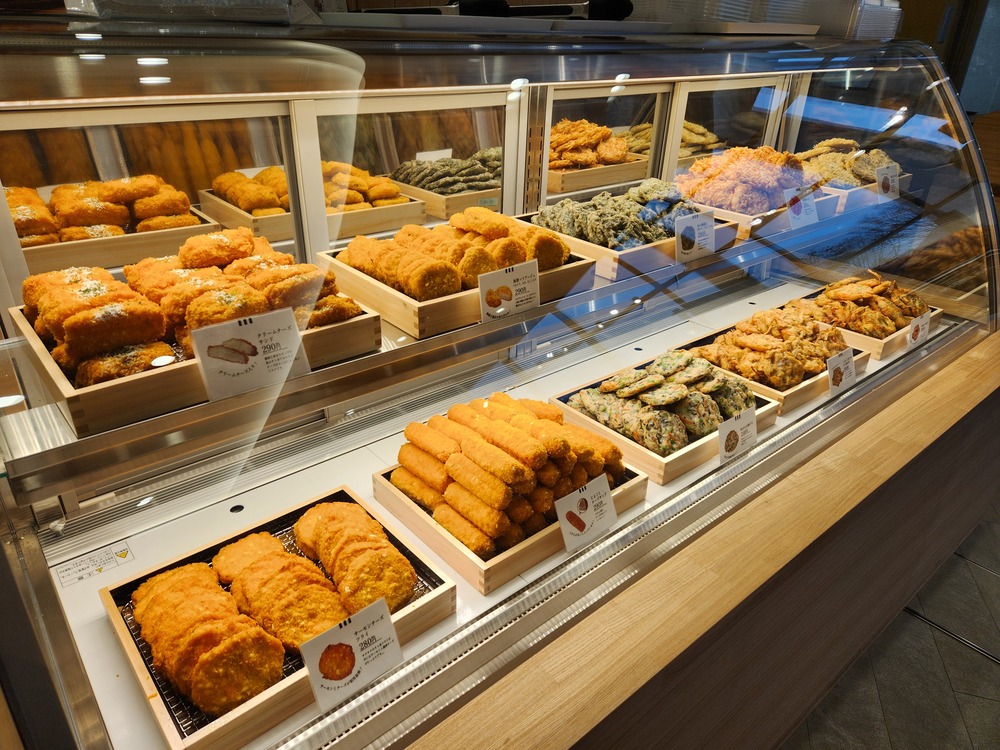 ちなみに、店内には、創作天ぷらの真空パックも販売しています。ショーケースに並ぶ総菜天ぷらとは内容が異なり、こちらは、お土産物や贈答品としてもオススメです。