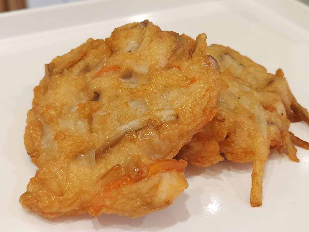 かき揚げの定番の組み合わせでもあるごぼうといか、そして、すり身との相性は間違いありませんよね。食感も楽しく、おつまみにもご飯のお供にもピッタリの一品です!
