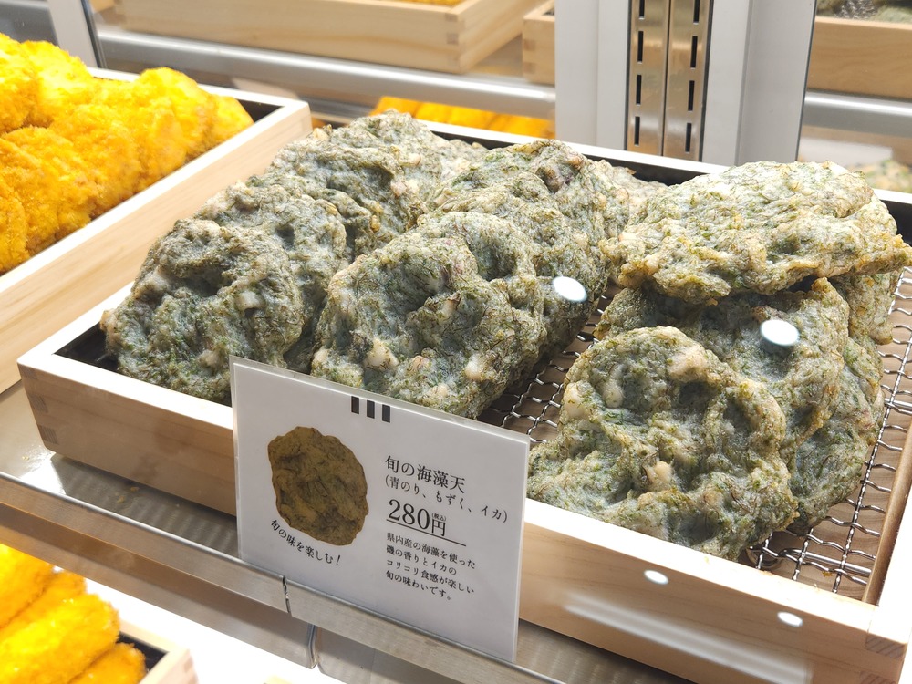 - 旬の海藻天(青のり、もずく、イカ) 280円