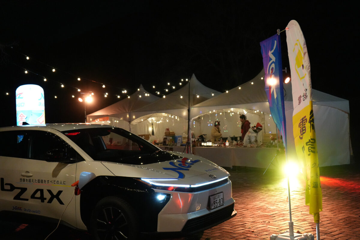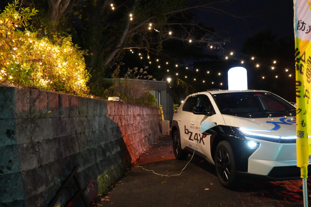 実は、この会場を彩るイルミネーションの一部は、この「bZ4X」から供給される電気で点灯しています。