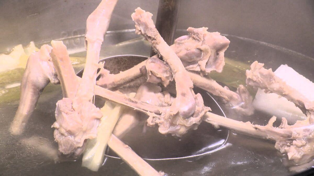 そしてこのスープがまた絶品。下処理したさつま地鶏のガラと香味野菜におよそ2時間じっくり熱を加え、旨みを抽出します。