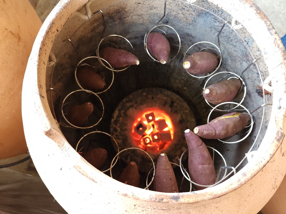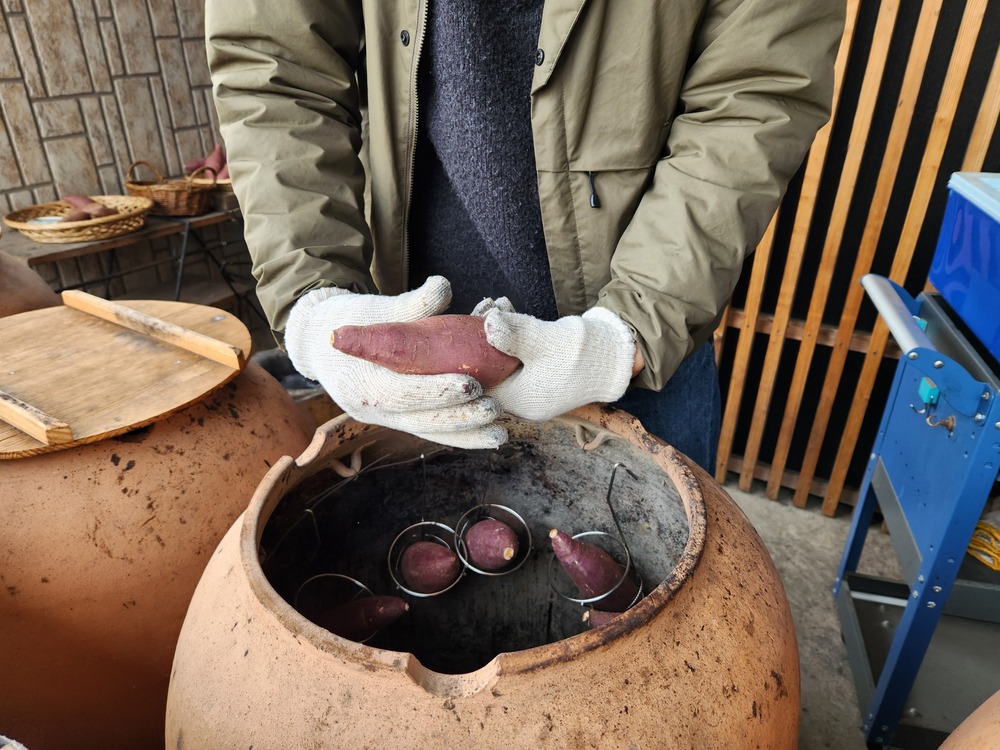 常滑焼の伝統工芸士が一つひとつ丁寧に焼き上げた特製の壺だそうで、この壺の中で芋を焼き上げています。