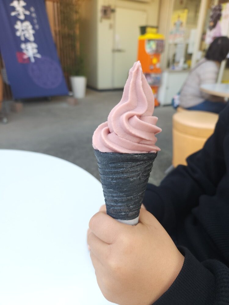 その名の通り、しっかりとお芋の味わいがするうえ、壺焼き芋を使用しているからか、少しねっとりとした食感も楽しめます。焼き芋の自然な甘さで後味もさっぱりしていて、とても美味しかったです!ちなみに、コーンは竹炭が配合されていて、黒いコーンに焼き芋のほんのり黄色いソフトクリームが映えます。