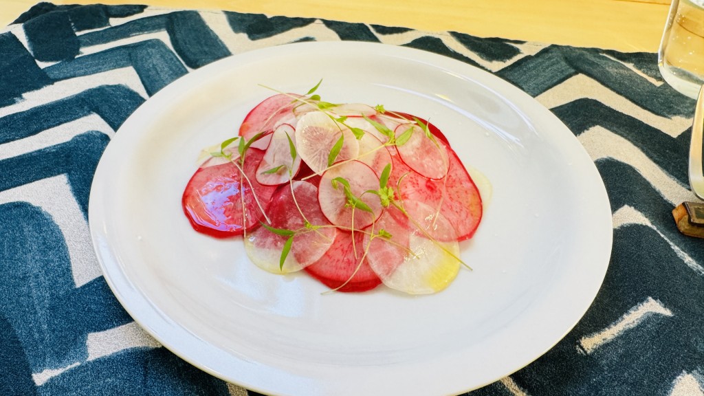 シャキシャキとした根菜の食感も楽しく、これから始まるコースへの期待が一気に高まります。