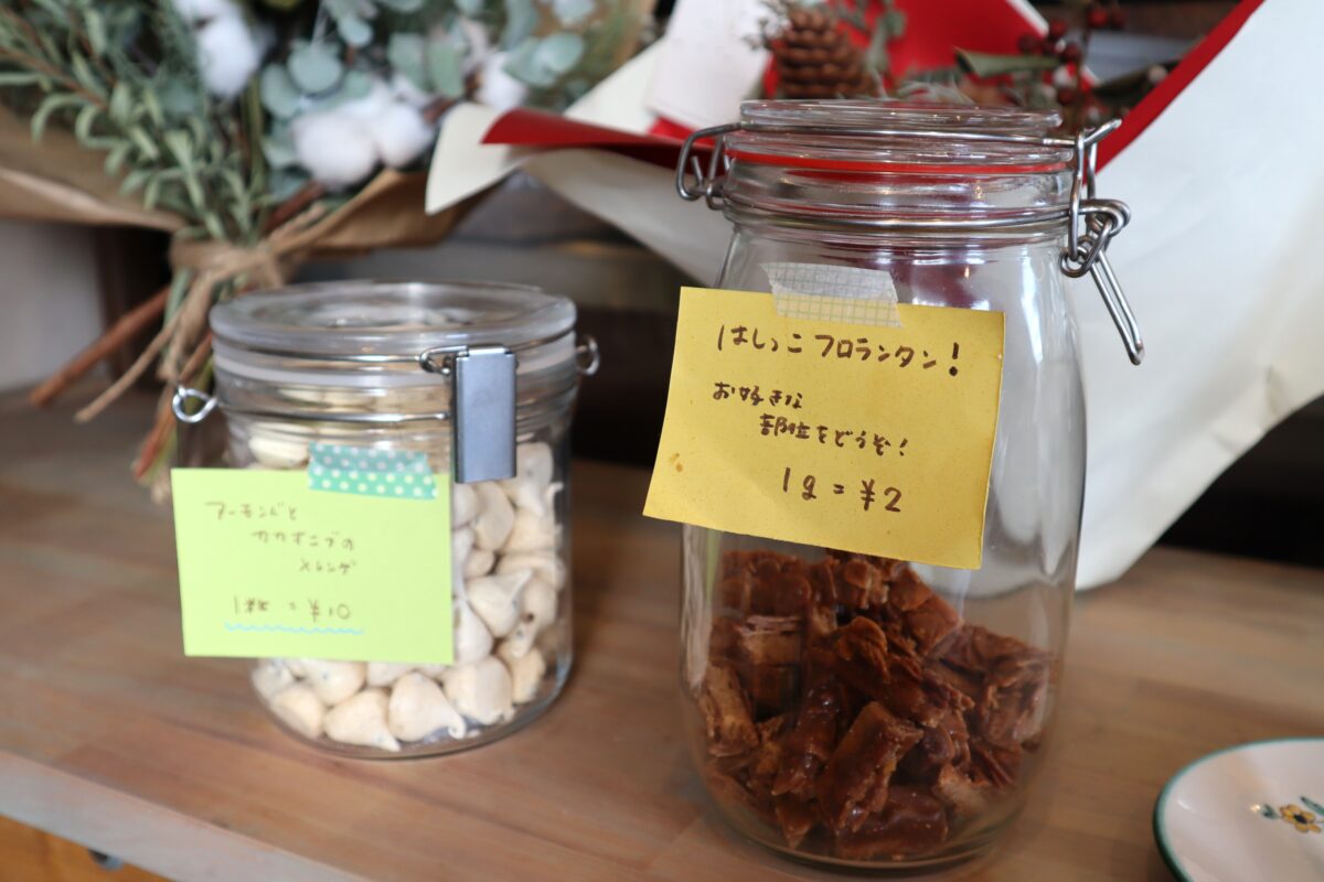 あまり洋菓子店では見かけませんが、こちらのお店ではクッキーを焼いた時に出る端っこや、少し割れてしまったものを量り売りもしています。