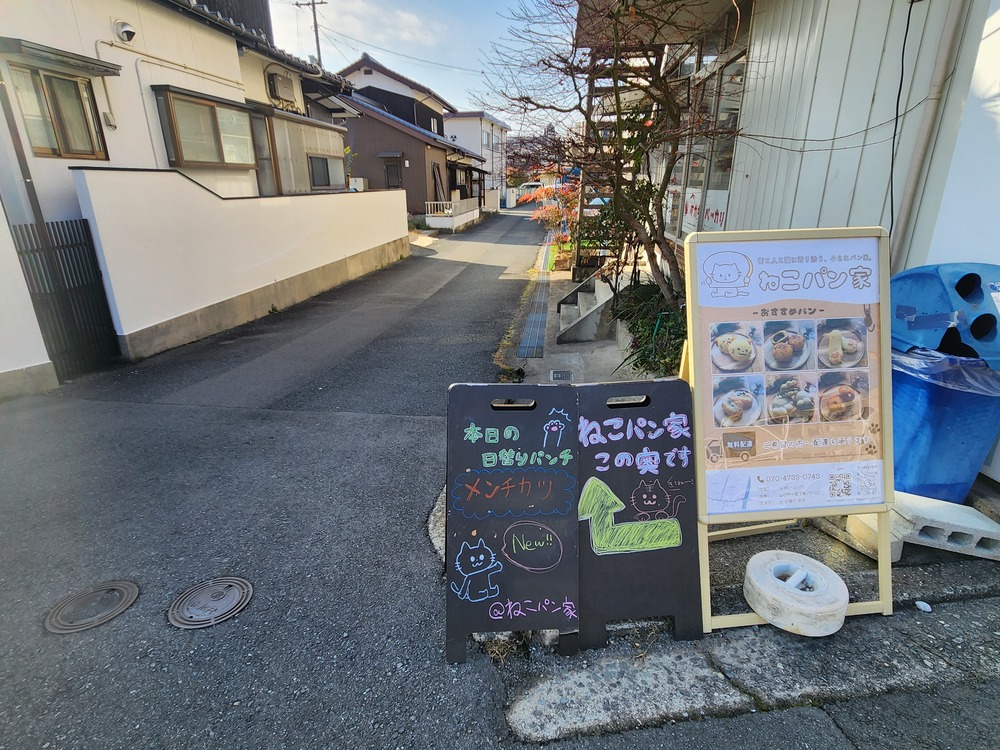 「ねこパン家」(山口市小郡下郷757-10)は、山口市小郡総合支所や小郡図書館へと向かう道の途中の小道をちょっと入ったところにあります。