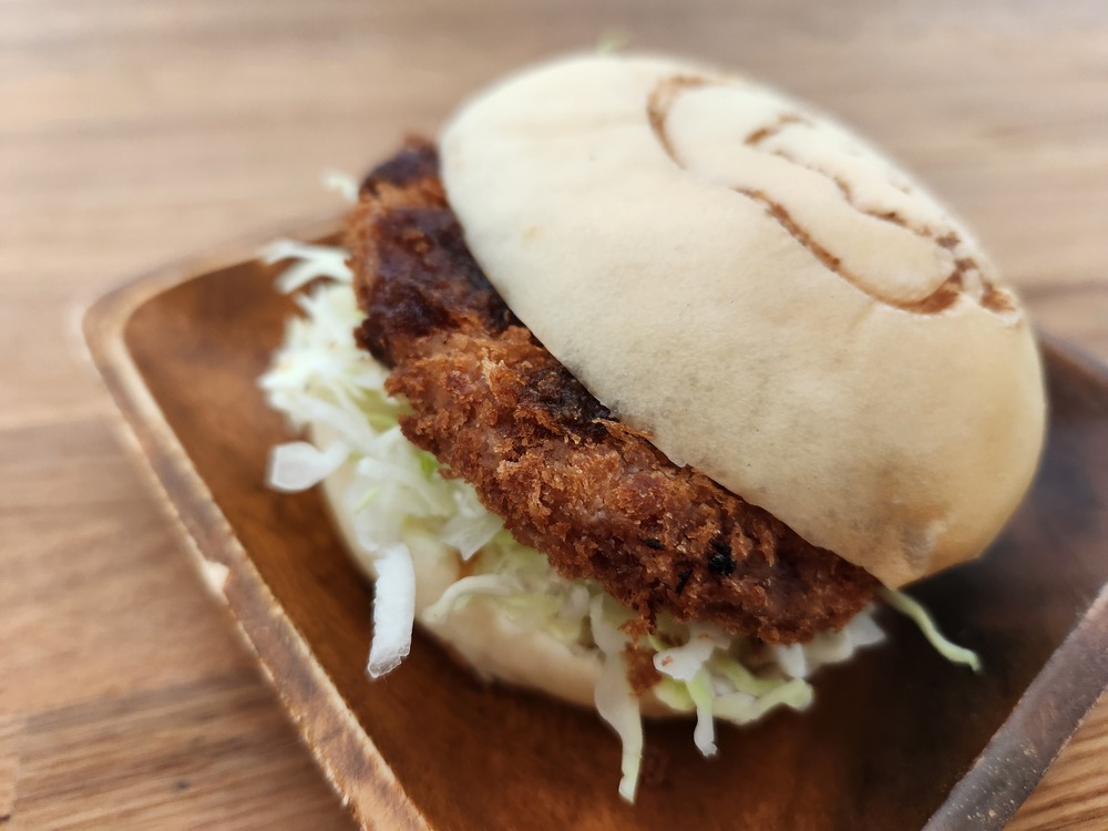 なんと、パン屋さんに日替わりメニューがあるんです!取材当日は、メンチカツだったのですが、とんかつや照り焼きチキンといった総菜系をメインに、その日によってパンに挟むものが異なります。挟むメニューによってお値段も異なりますが、360円~480円で販売しています。