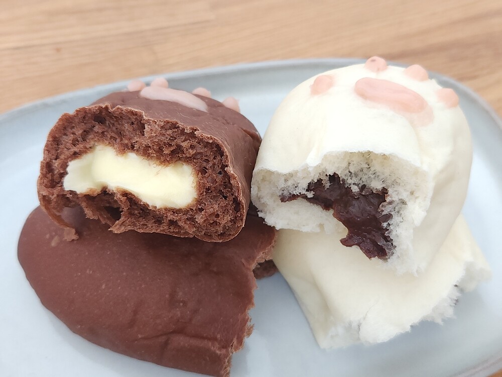 黒ねこのおててにはカスタードクリーム、白ねこのおててにはチョコクリームが入っていて、しっとり柔らかいパンとの相性もかわいらしさも間違いなし!おててなだけに、思わず手に取りたくなるパンです(笑)