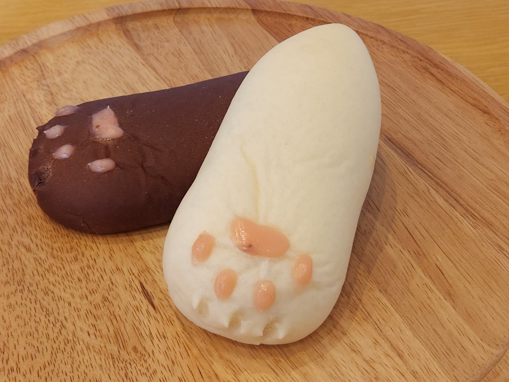黒ねこのおててにはカスタードクリーム、白ねこのおててにはチョコクリームが入っていて、しっとり柔らかいパンとの相性もかわいらしさも間違いなし!おててなだけに、思わず手に取りたくなるパンです(笑)
