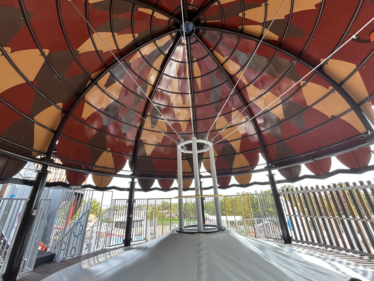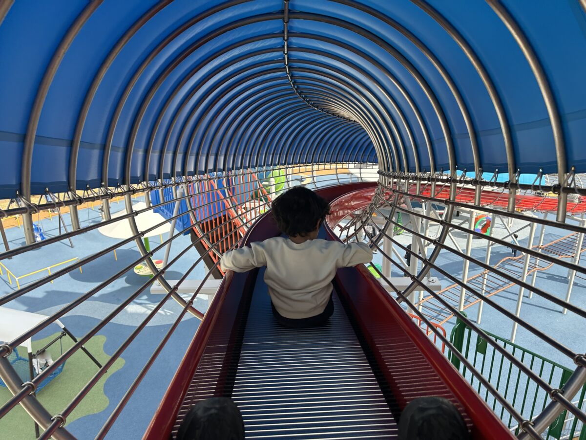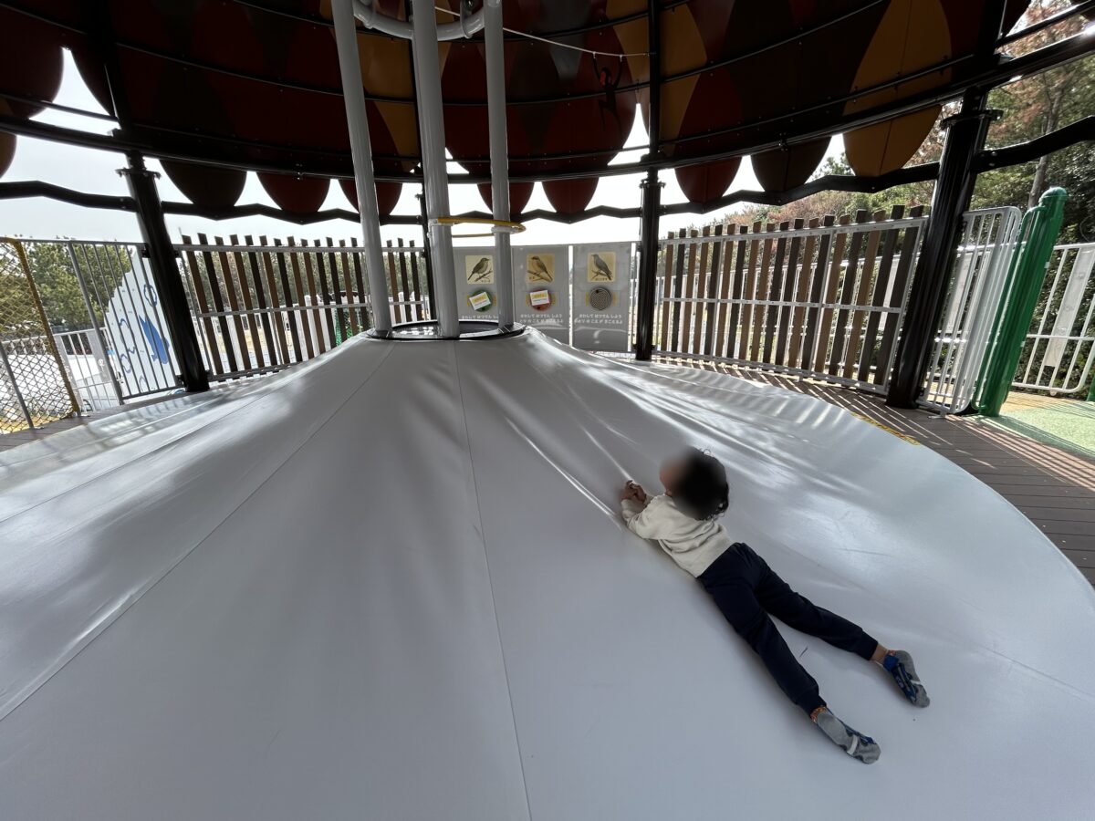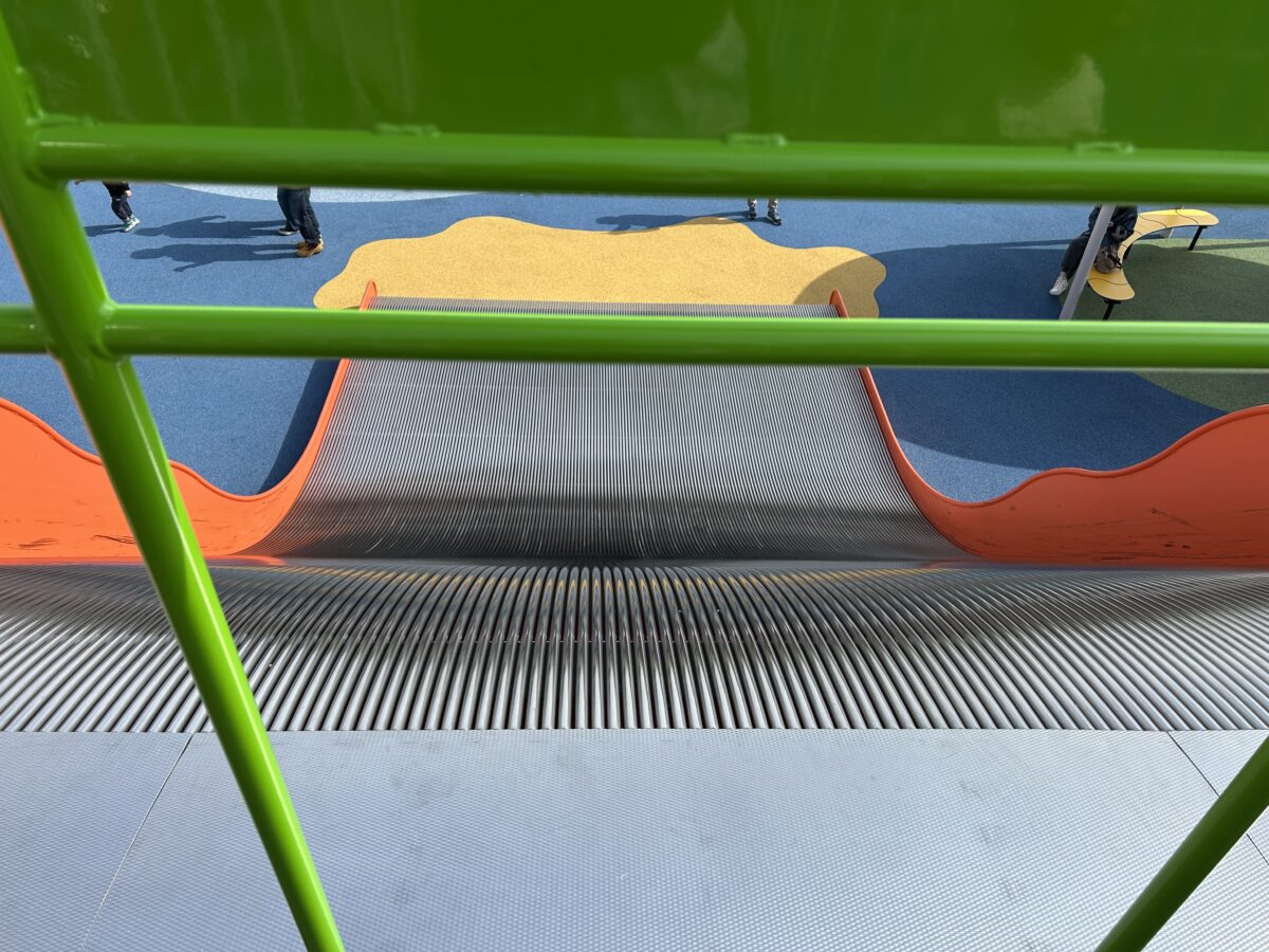 遊具の一番高い部分からは、ローラーすべり台で一気にすべり降りていきます。