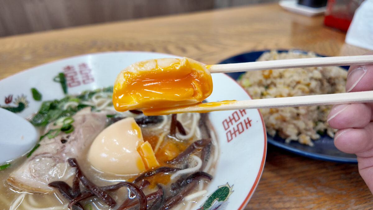 口に入れると黄身のコクが広がり、ラーメンの味わいに厚みが出ます。