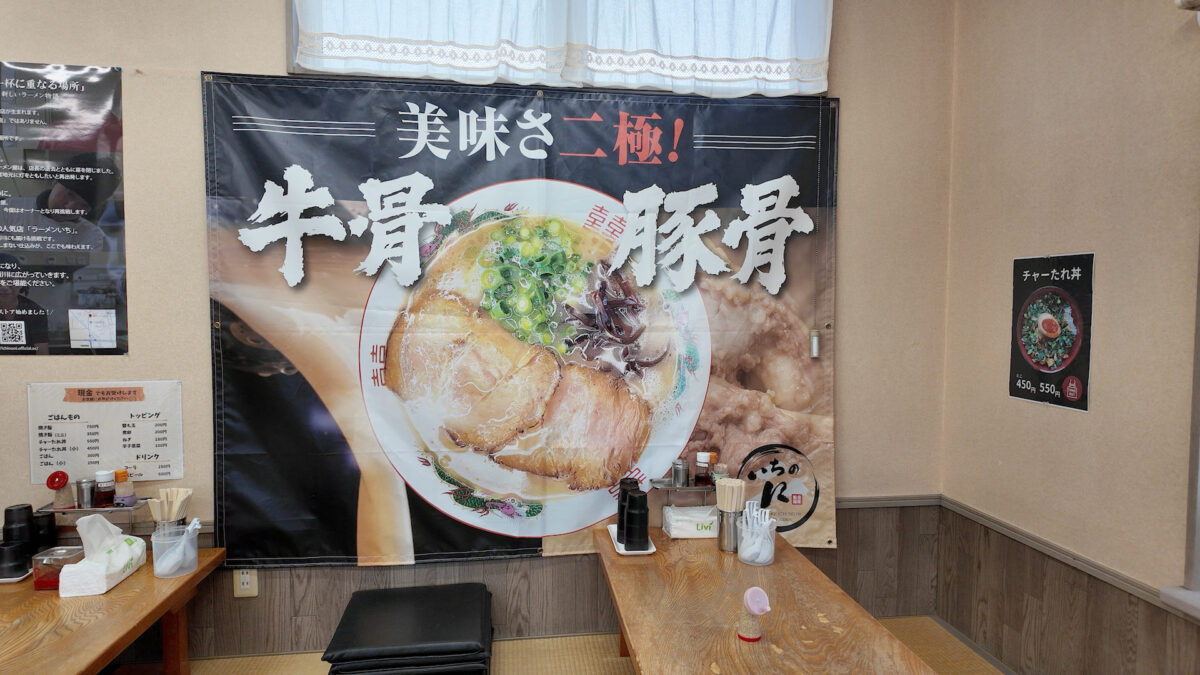 西部では珍しい牛骨ラーメンと、親しみのある豚骨ラーメン。