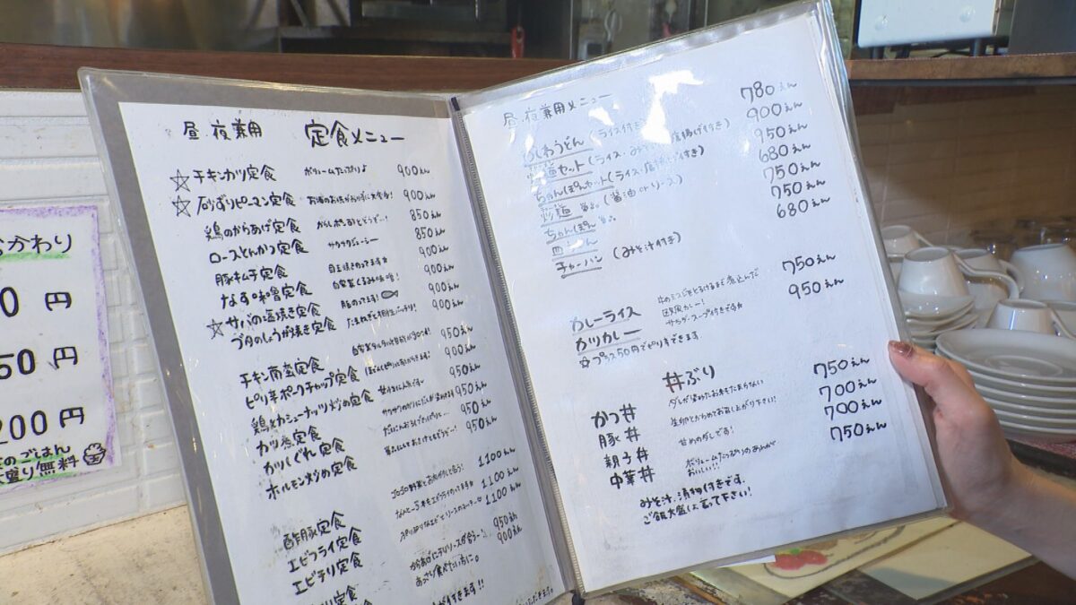 メニュー表を開くと、定食に丼、うどん、カレーまでずらり。思わず迷ってしまうほどの品ぞろえです。