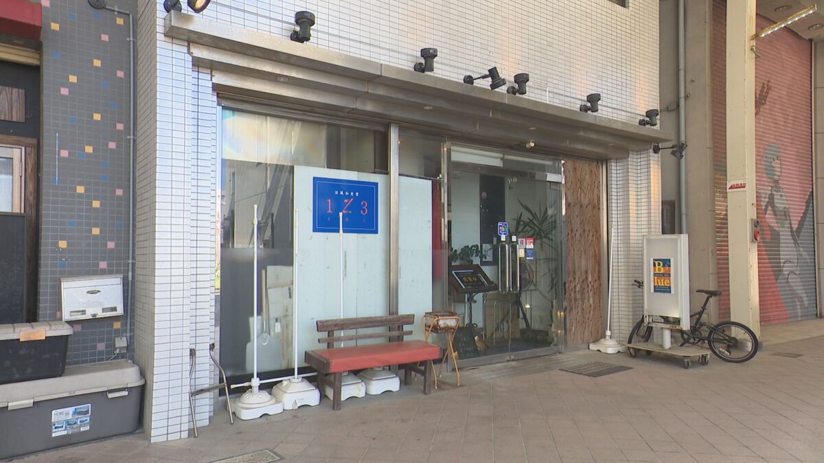 宇部中央銀天街のアーケードを歩いていると見えてくる、青色の看板が目印の「洋風和食堂1Z3(イズミ)」。