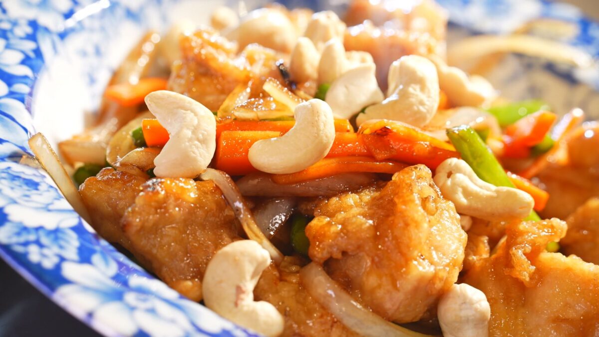 お店の看板メニューとして不動の人気を誇るのが、「鶏とカシューナッツ炒め定食」です。