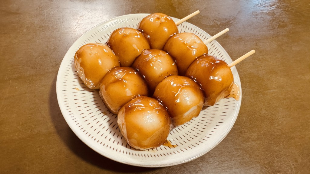まずいただいたみたらし団子は、あま~いたれがたっぷりと絡んだ、思わず次のひと口に手が伸びるおいしさです。
