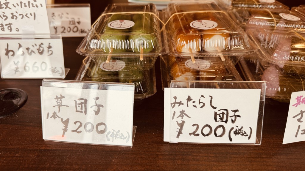 今回、このなかからみたらし団子とさくらもちをお持ち帰りしました♪