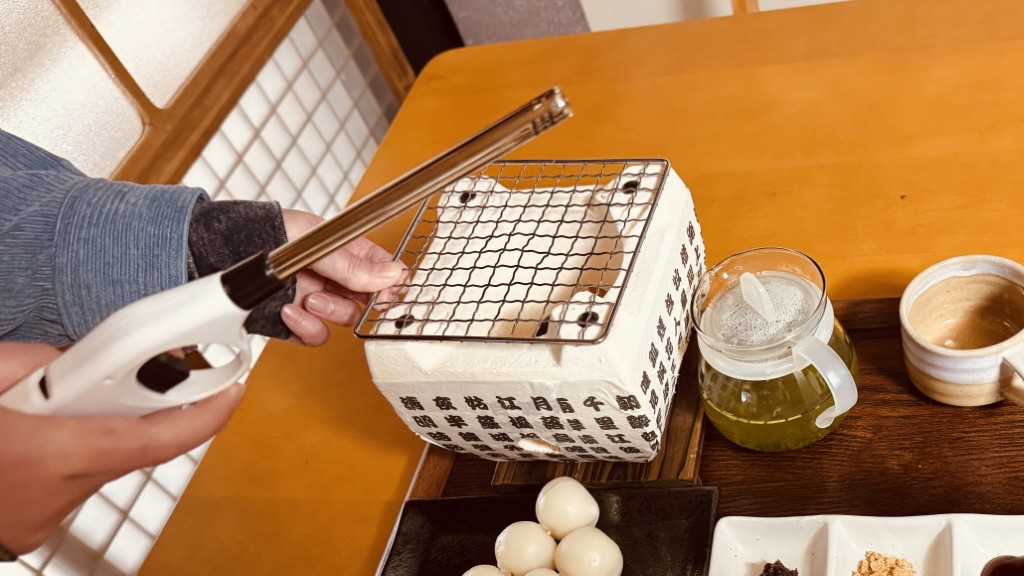 店主にどのぐらい焼けばいいか聞いたところ、お団子は元々そのまま食べられる状態なので、焼き加減は好みで良いそうです。お客さんによっては「しっかり焼いたほうがおいしい!」との声もあるのだとか。