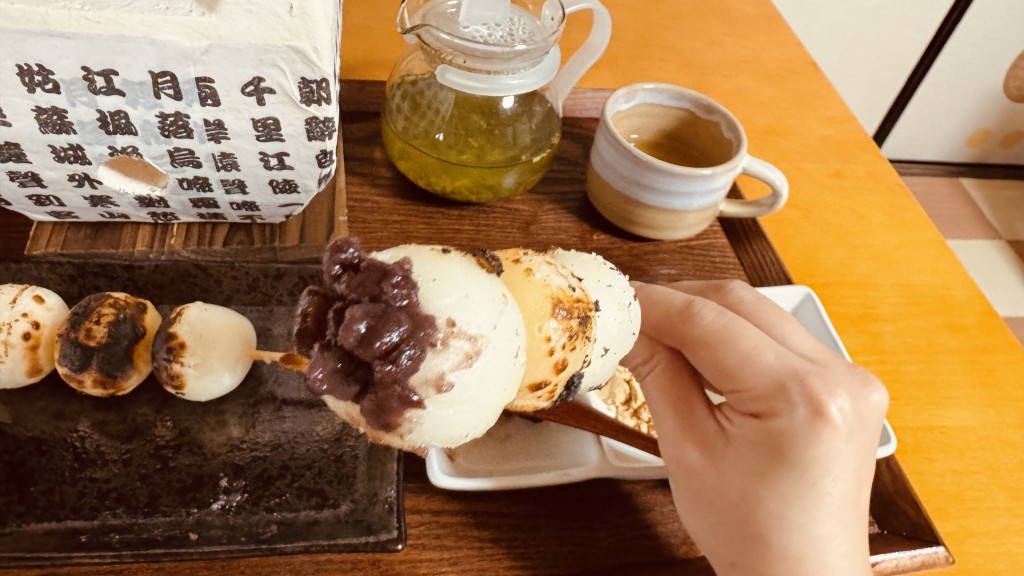 香ばしくパリッと焼き上がった表面と、中のほんのり甘くてもっちりとした生地が、あんこと絶妙にマッチします。あえて大きく作っているというお団子は、食べ応えバッチリの幸せおやつでした。