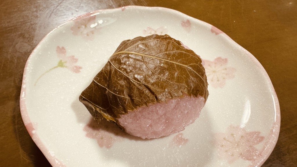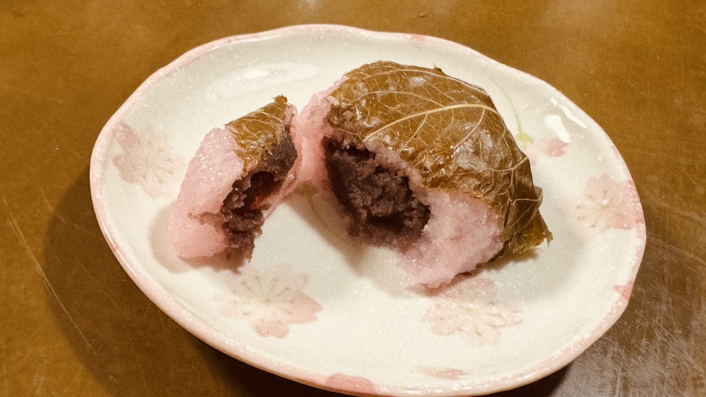 中にはあんこがぎっしりと詰まっていて、やさしい甘さと桜の葉のほどよい塩気が絶妙にマッチします。ひと口ごとに春の訪れを感じられる、今の時期ならではの一品でした。