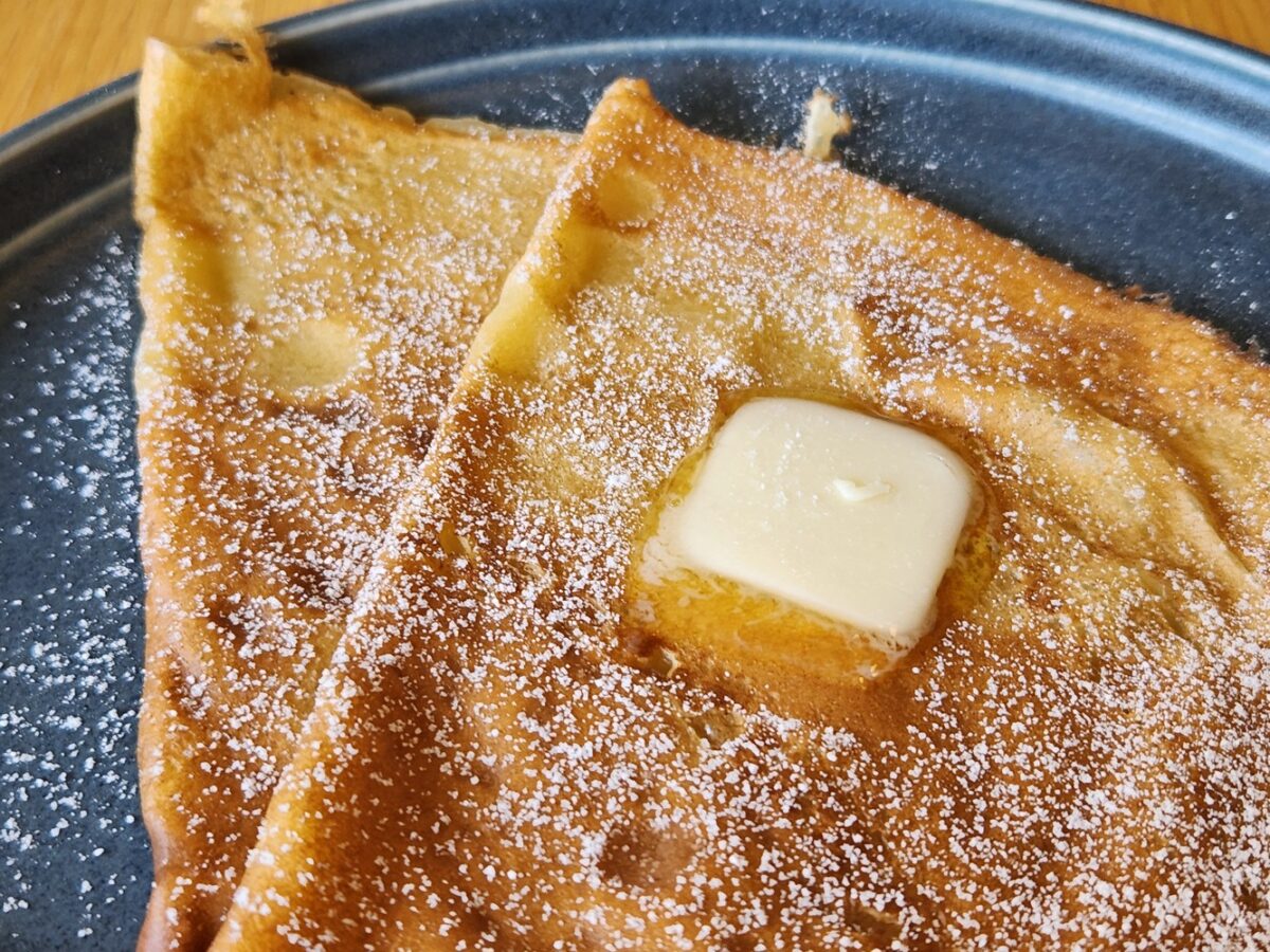生地はもちもちとした食感で、ほんのりした甘さ。クレープ自体がとにかく美味しいんです!砂糖の甘みとバターの塩味がほどよく、味自体はシンプルなのですが、素材の美味しさが引き立ち、ひと口いただくたびにじんわりと染み入ってくる美味しさでした。そして、ナイフとフォークでいただくからか、ちょっと特別感もあるんですよね。