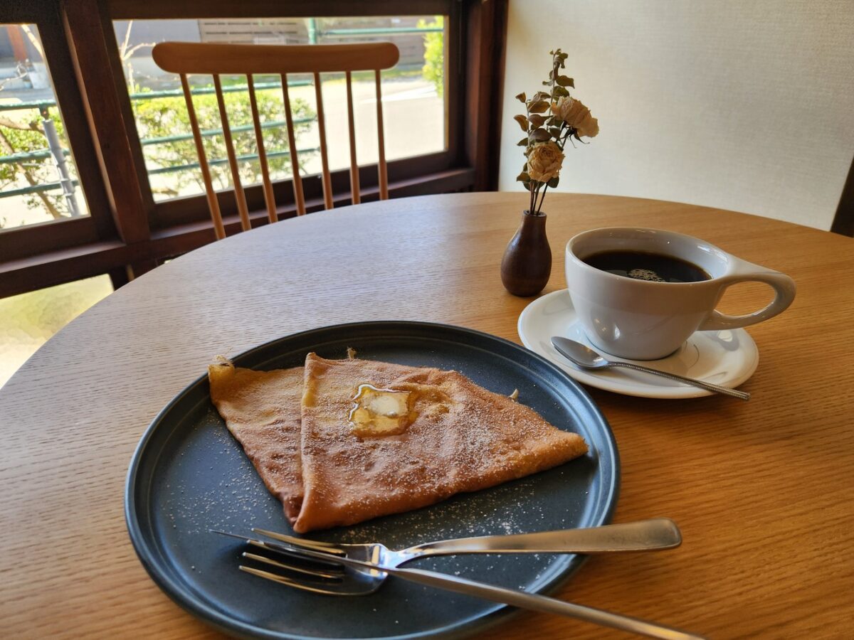 実際に、常連の地元のお客さんが居合わせた他のお客さんと一緒に会話をして楽しむなど、コーヒーを通して繋がりも生まれているそう。古民家ならではの温かみに加え、建物の歴史や人とのご縁や繋がりを大切にされるお二人の想いがこの空間をつくりあげているんだなぁと感じられました。美味しいコーヒーとクレープをいただきながらホッとひと息つきつつ、緩やかに時間が過ぎていく、なんだか心も解きほぐされるような空間でした。