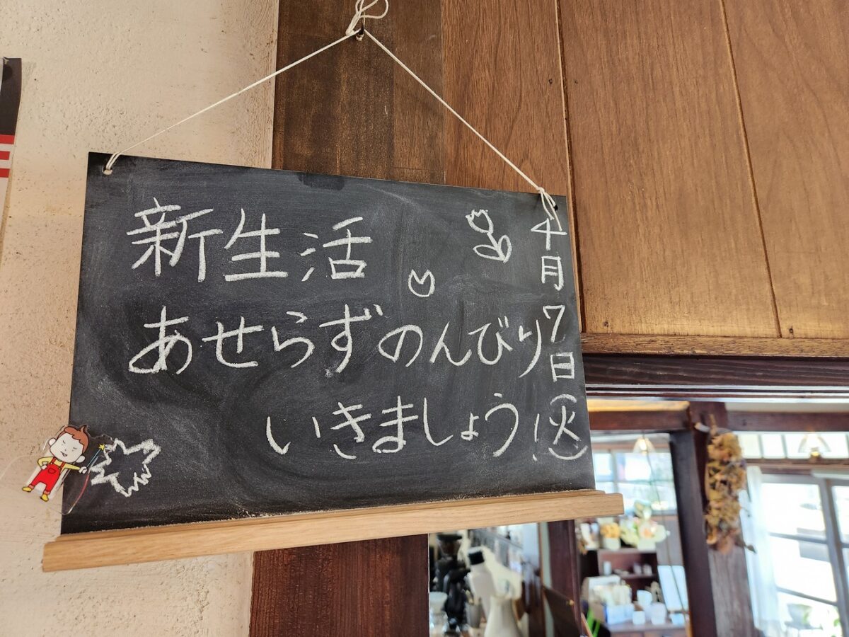 店内には、お二人の教員時代を思わせるメッセージボードも。黒板に書かれたメッセージにホッと気持ちも和みます。