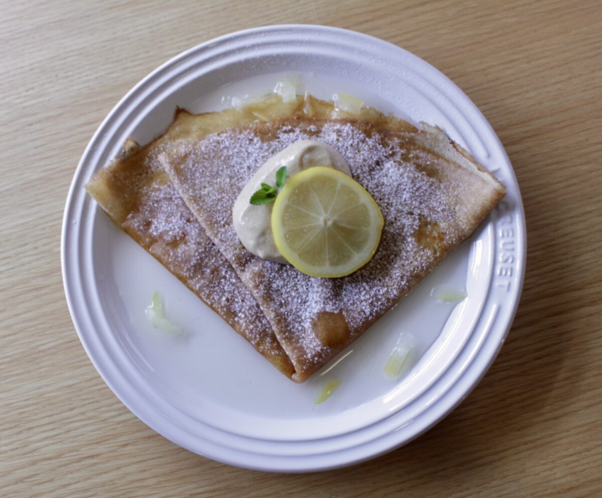 - シュゼット風レモンクレープ(紅茶のクリームチーズ添え)(ドリンク付き) 1,350円