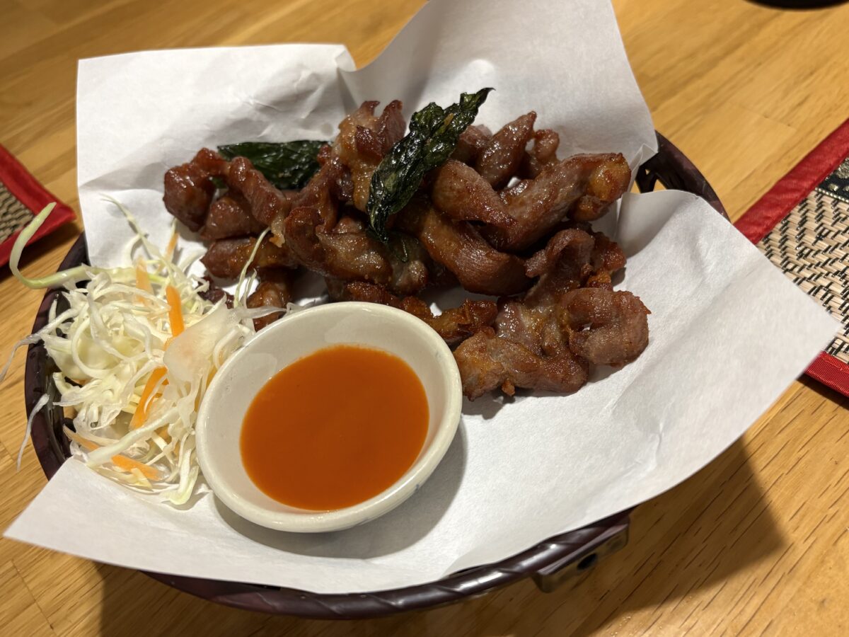 すべての料理が辛いわけではありませんが、「ハーブたっぷり豚肉ソーセージ」や「ヤムウンセン(春雨のサラダ)」は、しっかりと辛さを感じる一皿。本場のスパイスならではの刺激があり、あとを引くおいしさです。