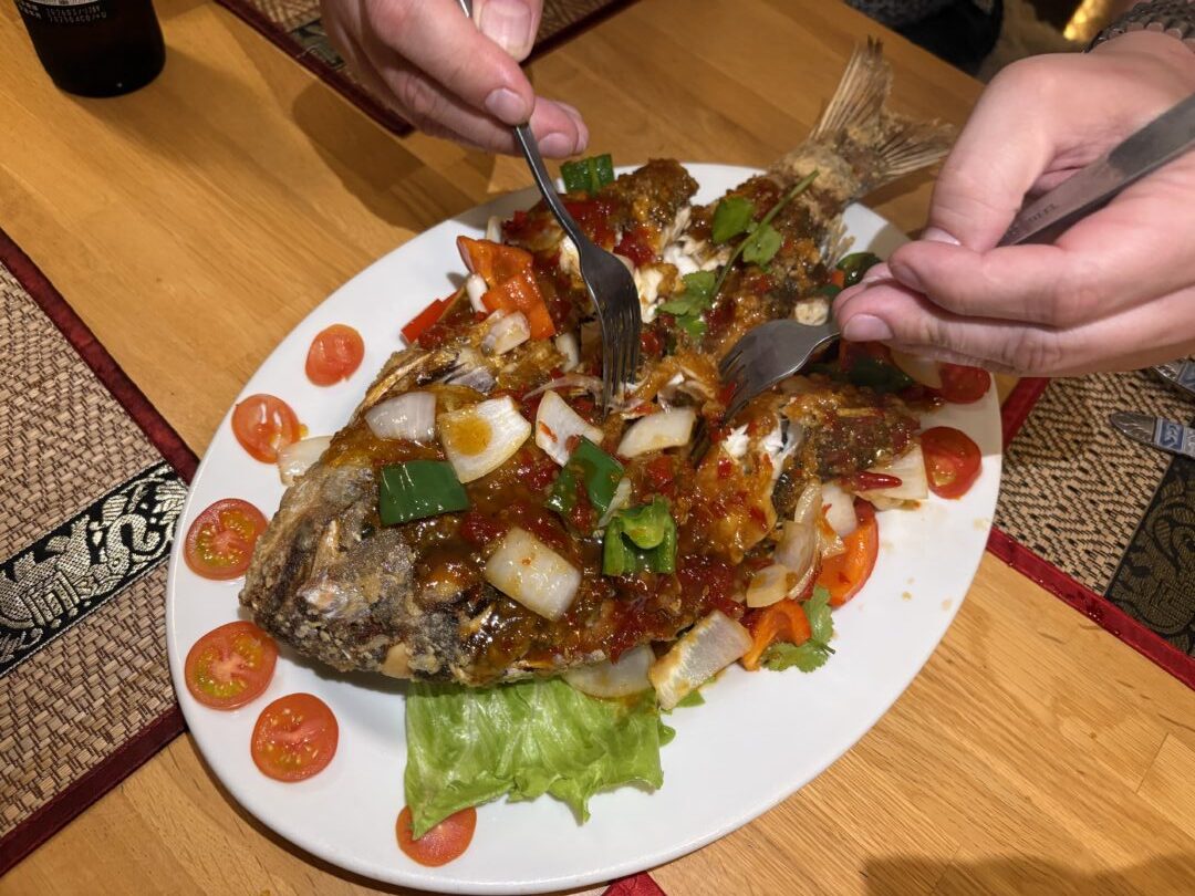 追加注文した魚料理は予想外の大きさでびっくり。魚のサイズや種類は仕入れの状況によるそうなのでオーダーの際に聞いてみてくださいね。