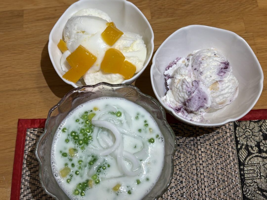 タピオカとココナッツミルクはコーンが入っていて驚きましたが、それもまた楽しい発見。甘いデザートの食材として認識しておらず衝撃を受けました。