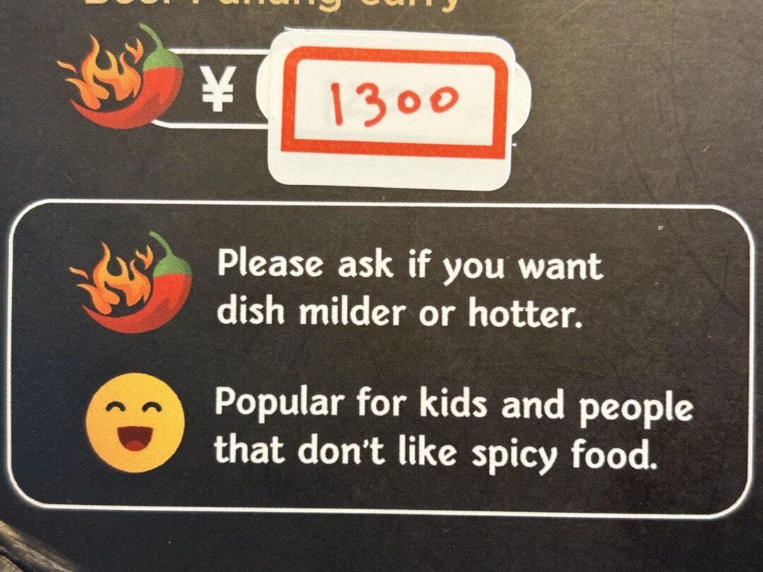 メニューには料理ごとに「辛いマーク」と「ニッコリマーク」が表示されているので、辛いものが苦手な方やお子さん連れでも選びやすいのが魅力です。
