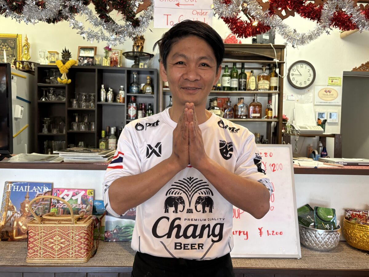 日本に来て25〜26年。以前は広島で会社員として働いていました。その頃に知り合ったタイ人の友人とのご縁から、レストランオーナーの話が舞い込んできたそうです。